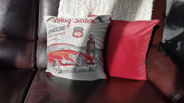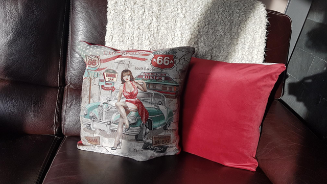 Coussin confectionné à partir de carré jacquard français motifs iconique us